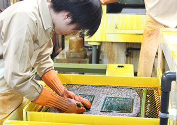 当社得意先でもある京セラ(株)様の小集団部門別経営(アメーバ経営)を1994年より導入しています。全営業・製造部門を小集団(アメーバ)に分けて会社とみなします。それぞれのアメーバに経営者(リーダー)を立て、売上・仕入・経費・労働時間を管理運営し採算を追求していきます。各アメーバが知恵をしぼり収益確保を目指しています。各アメーバのメンバーは、薬液などの材料や文房具といった消耗品に至るまで使い方を考え、リーダーとともに活動に参加しています。